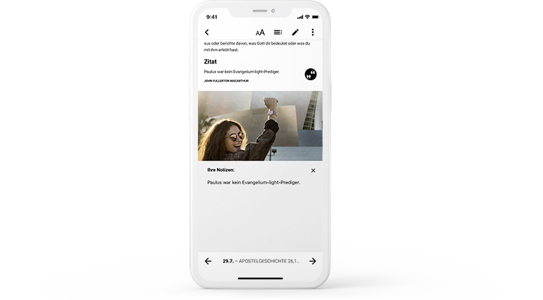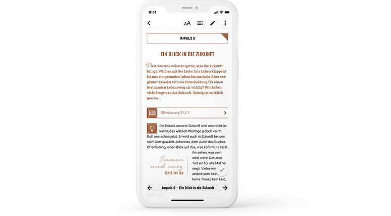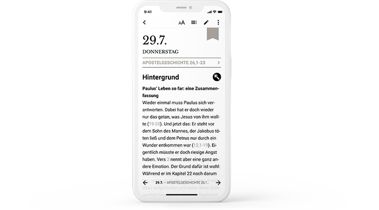Mit der App Bibelzeit können Sie bequem die Bibellese-Zeitschriften Orientierung, Atempause und Klartext auf dem Smartphone lesen, Sie finden sie bei Google Play oder im iTunes AppStore unter dem Stichwort Bibelzeit - oder Sie nutzen direkt diese Links: