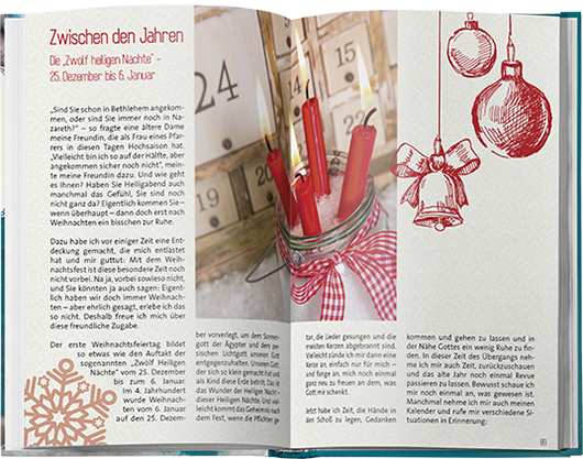 Sie finden dazu für jeden Tag einen Bibelvers mit persönlichen Gedanken, einen Impuls, Lyrik oder Liedverse. Einige Geschichten und eine Adventsliturgie laden auch zum gemeinsamen Feiern ein.