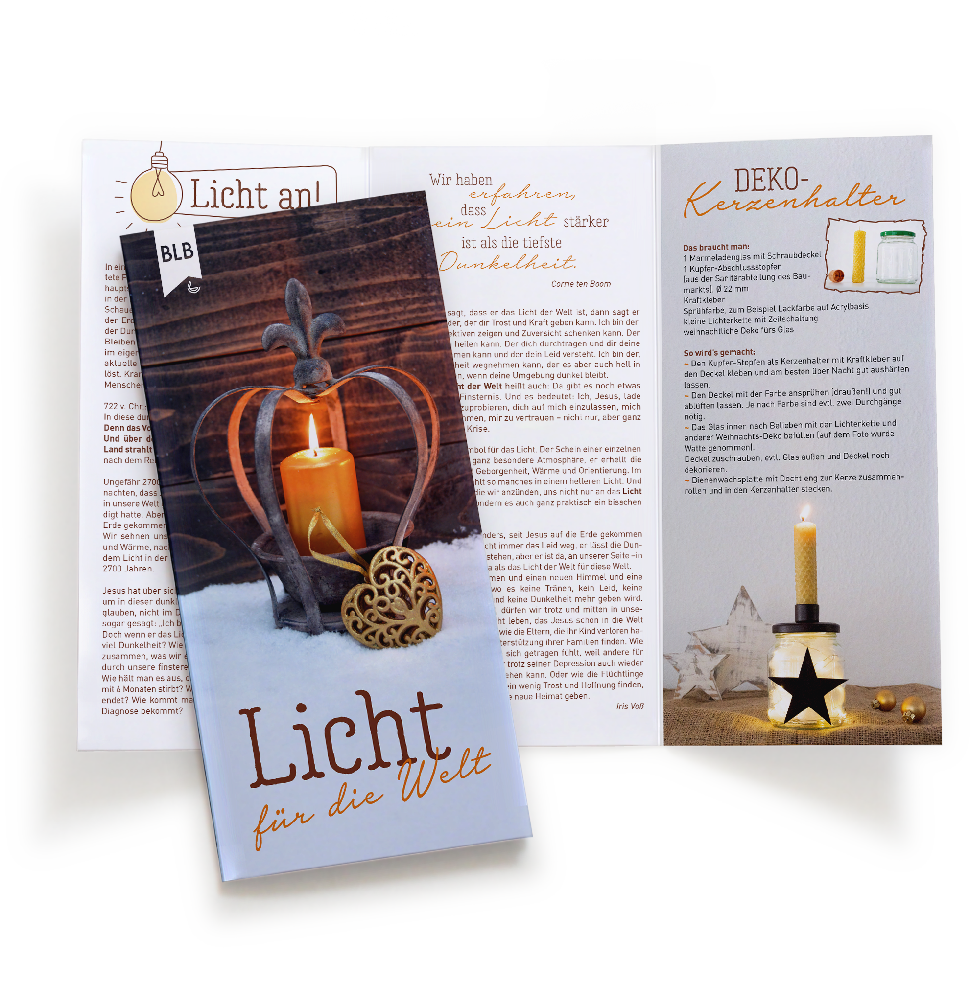 Liebevoll gestaltete Faltkarte mit Geschichten und Gedanken zu Weihnachten, dazu ein Zündholzbriefchen. Eine unaufdringliche Einladung für Verwandte, Freunde, Nachbarn, Kollegen oder die ganze Gemeinde, sich auf besondere Weise der Weihnachtsbotschaft zu nähern.Faltkarte10,5 x 21 cmmit Zündholzbriefchen