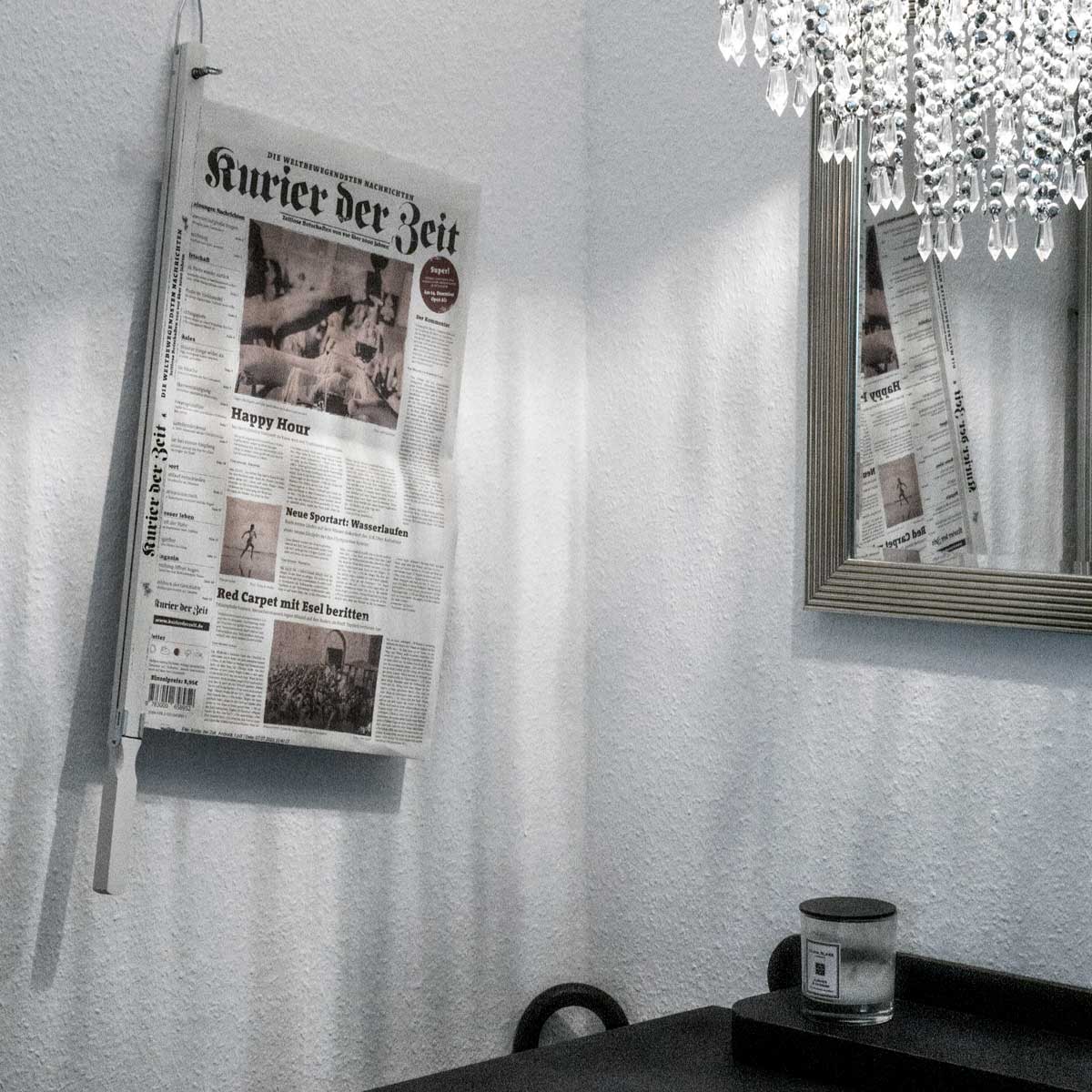 Befestigung der Zeitung durch 2 Aufspießstifte. Leichte Handhabung.